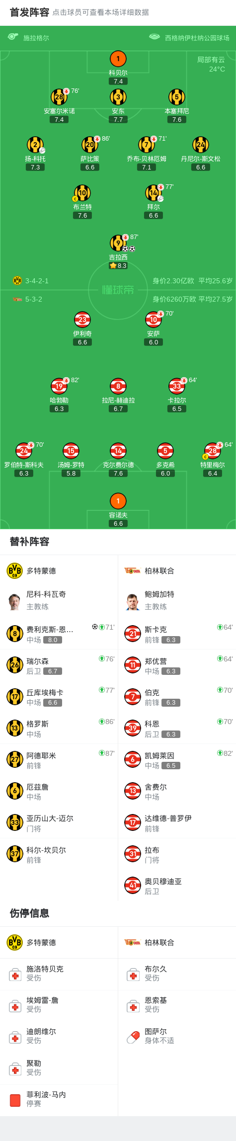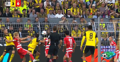 第32分钟,多特蒙德角球破门,可惜干扰门将犯规进球无效