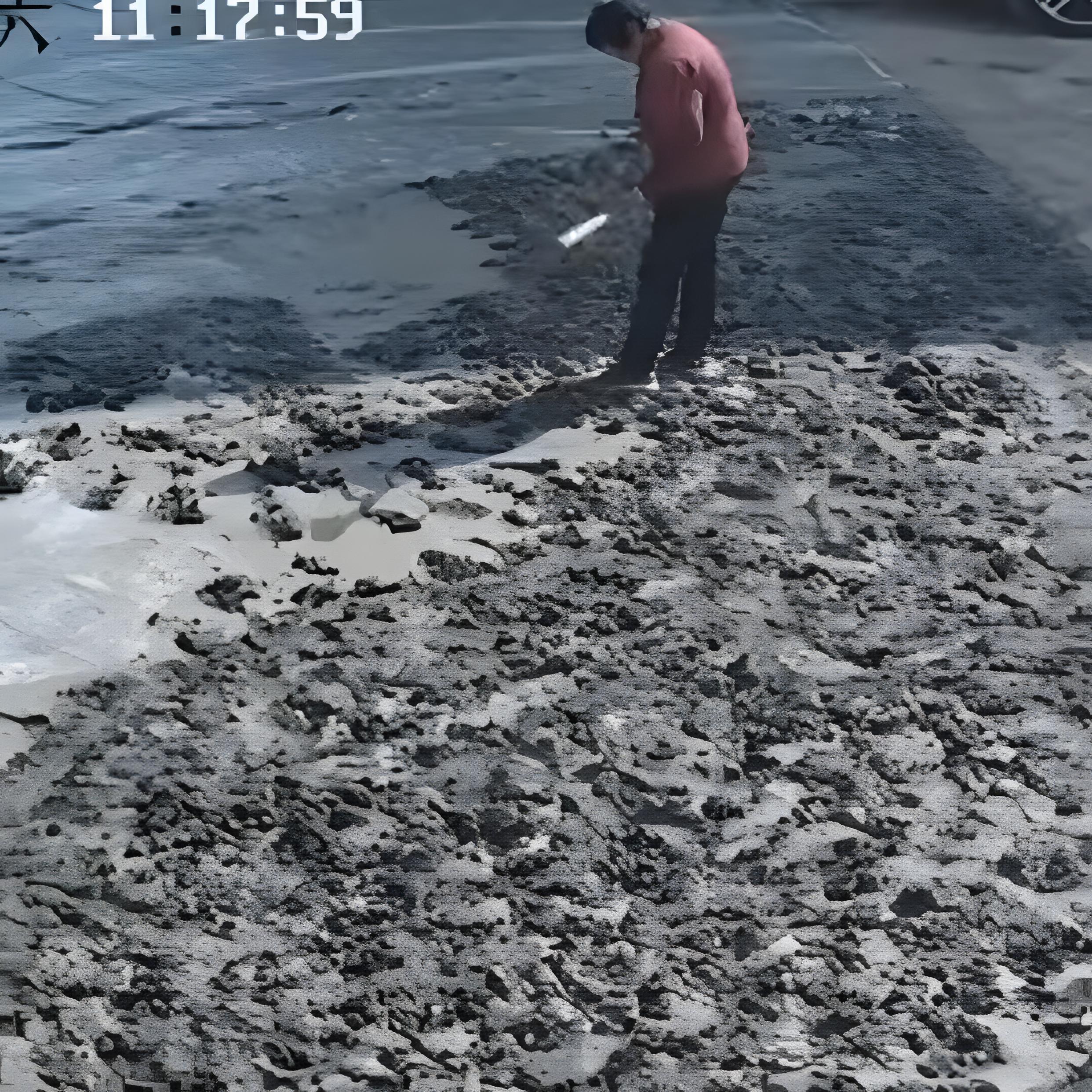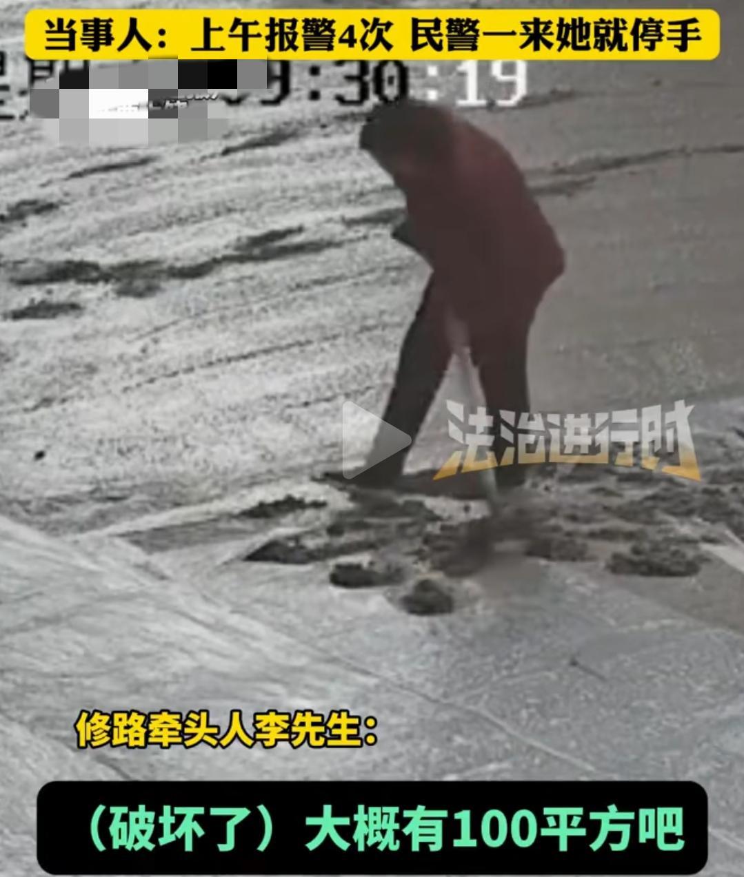 挖路的是位80岁的张老太,佝偻着背却抡锄有力,三个小时把百余平方米新路凿成“蜂窝煤”,最深的坑能塞进成年人的脚。
